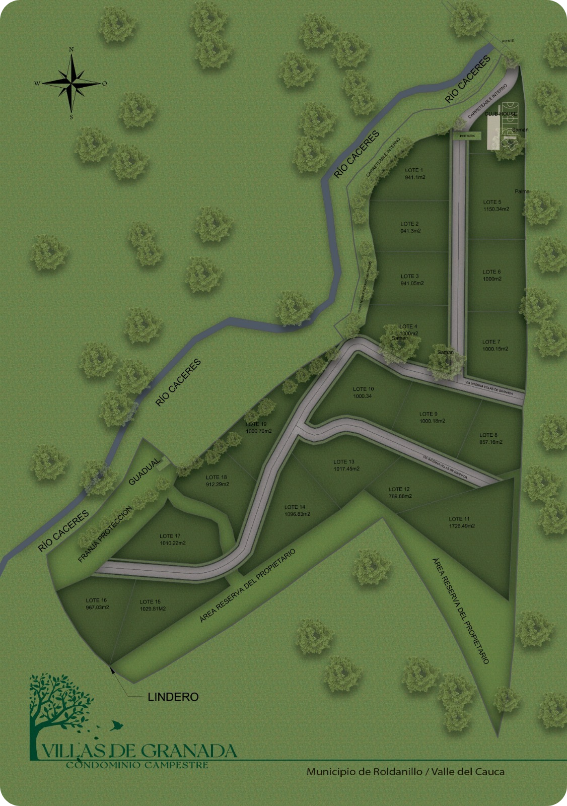 Villas de granada es un proyecto cerrado campestre concebido bajo modalidad de “Licencia Urbanística de Parcelación”, ubicado en el municipio de Roldanillo, Valle del Cauca, en la vereda El Rincón.